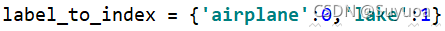 我们定义飞机的标签为0,湖泊的标签为1,我们先创建一个字典明确对应关系