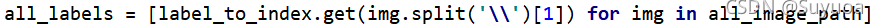 定义之后我们要为所有的图像添加标签,我们发现在路径中,中间的子文件夹名称就是该图片对应的标签,所以我们现在把这个名称取出来