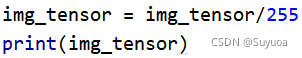 之后我们对图像进行归一化,由于当前图像的取值范围为(0-255)所以我们除255(一般的图像取值范围都是0到255)