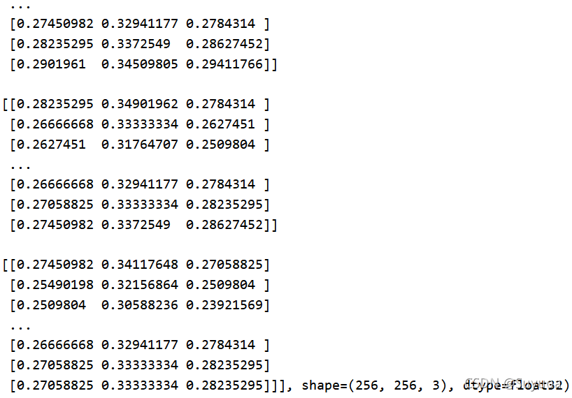 此处我们将其都改为(256,256)的图像大小,之后将其类型转变为float32,再之后归一化
