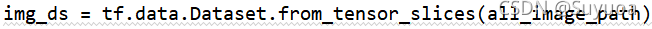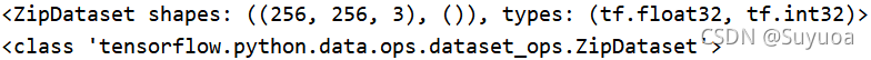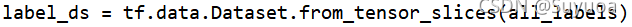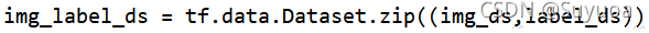 在这一步中我们要把刚刚的图片数据集和标签数据集合为一个数据集,我们使用tf.data.Dataset.zip()将两个数据集合并