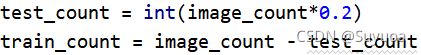 我们可以使用20%的数据进行验证,其余图片进行训练,我们现在定义这两个数值,这里由于乘0.2可能会出现小数,我们的数量是不能有小数部分的,所以我们取整形部分