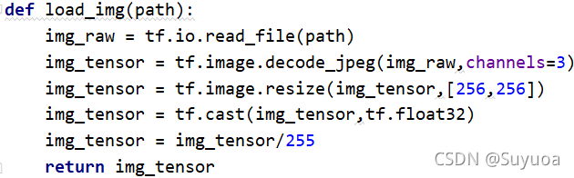 我们训练的数据怎么处理的原数据,在预测的时候也要对被预测图片进行一遍相同的处理,所以我们要再次使用一次上面定义的load_img()