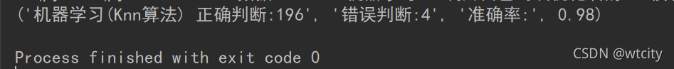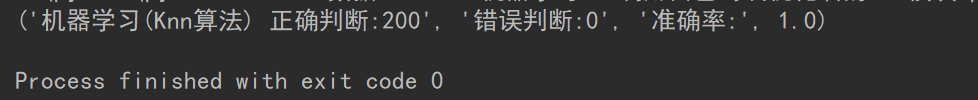 return f"机器学习(Knn算法) 正确判断:{np.sum(np.array(predict_==Y_test),dtype='int')}",f"错误判断:{len(Y_test)-np.sum(np.array(predict_==Y_test),dtype='int')}",f'准确率:',finnally