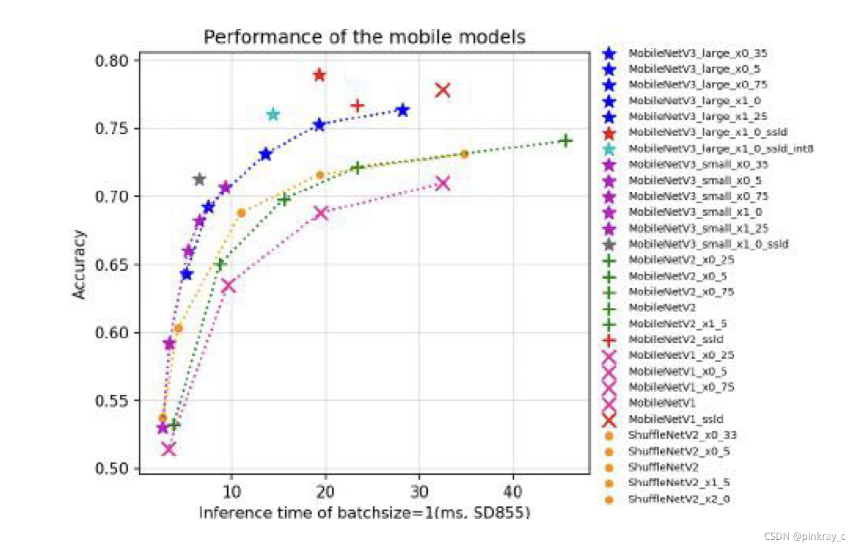 ? ? ? 根据几种主干在Snapdragon 855 (SD855)上测试推理时间(如下图所示),PP-OCR采用了mobilenet_v3和resnet骨干网络来保证性能和减小模型大小。