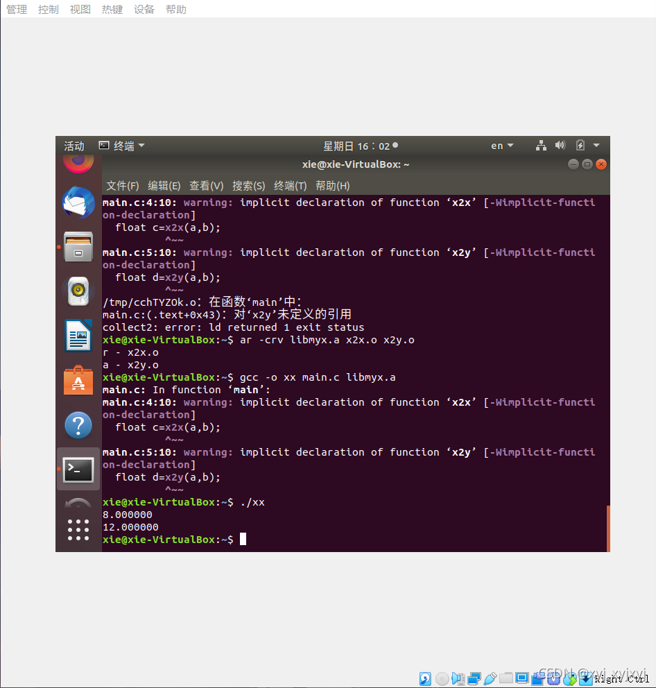 然后gcc -o xx main.c libmyx.a(xx为重命名名字)