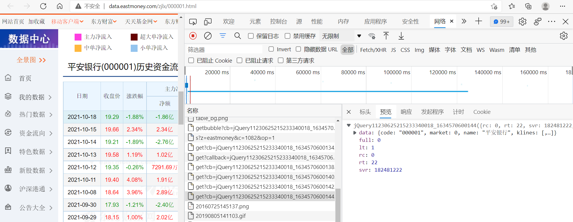 ????????本次爬虫以东方财富网中某企业的资金流向为目标。