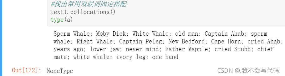 但是collocations()相对于collocation_list()方法是不能选取前多少个的,它输出的数据类型是Nonetype
