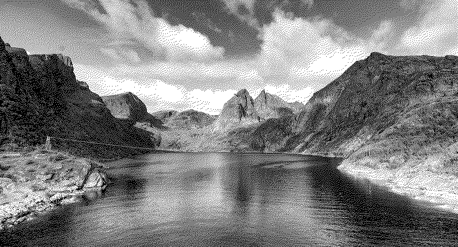 如果把convert那一句的参数“L”改成“1”,即:img = img.convert("1"),效果会怎么? 就真地的的确确只有两种颜色了: