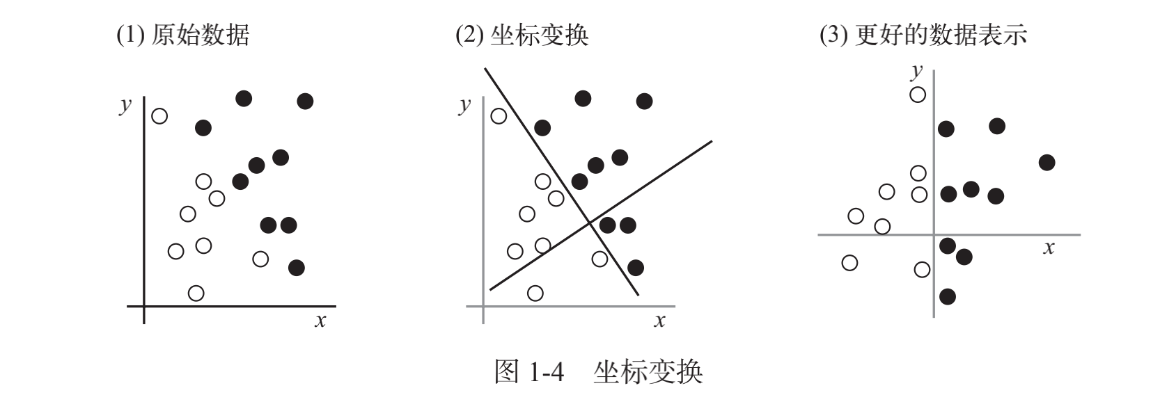 ? ? ? ? 我们需要的是一种新型的数据表示可以明确区分白点和黑点。这里采用的是坐标变换。如下图所示: