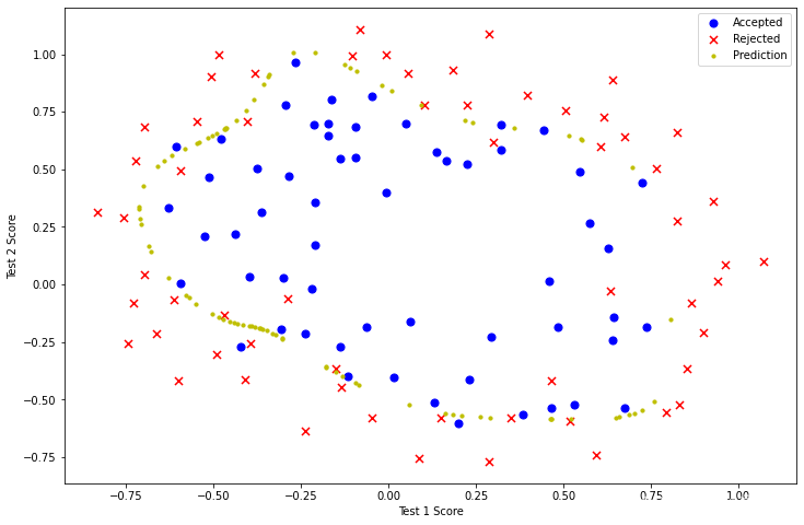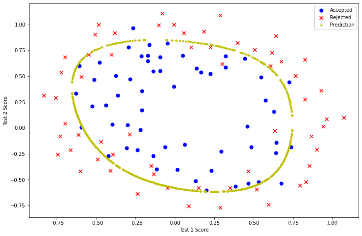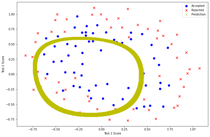 result2 = opt.fmin_tnc(func=costReg, x0=theta2, fprime=gradientReg, args=(X2, y2, learningRate))