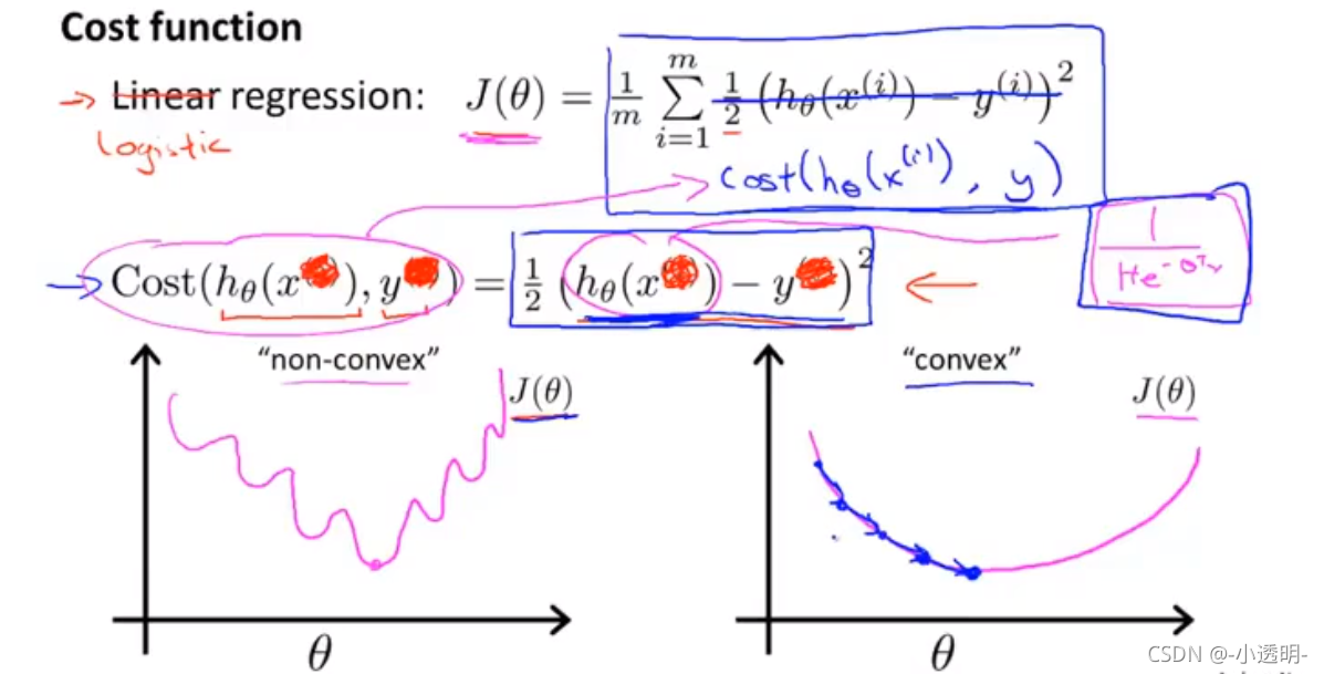 2.2 代价函数(cost function)有时也叫 对于大多数问题,特别是回归问题,都是一个合理的选择。 一个好的代价函数需要满足两个最基本的要求:能够评价模型的准确性,对参数θ可微。 在线性回归中,最常用的是均方误差(Mean squared error),具体形式为: