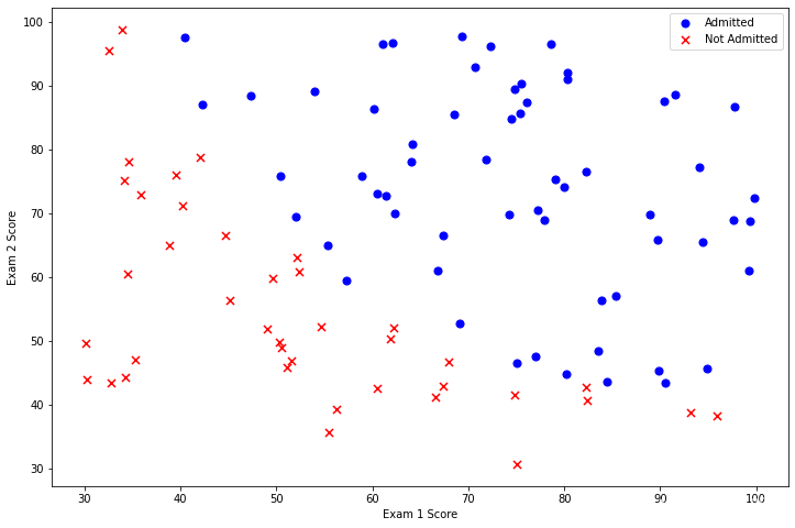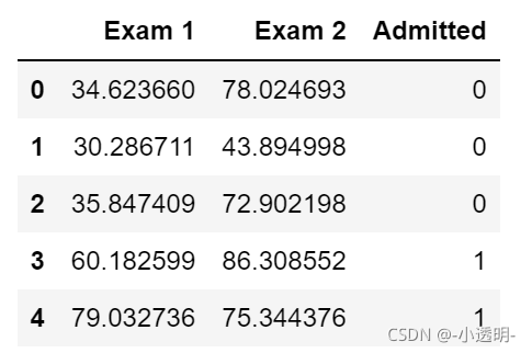 data = pd.read_csv(path, header=None, names=['Exam 1', 'Exam 2', 'Admitted'])
