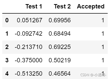 data_init = pd.read_csv(path, header=None, names=['Test 1', 'Test 2', 'Accepted'])