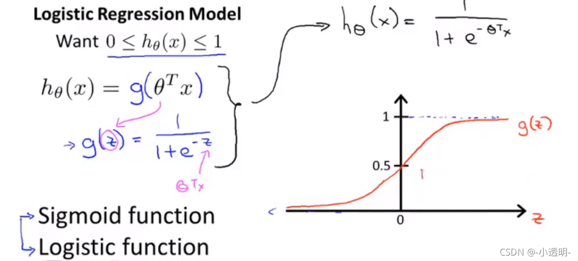 对于要预测的变量y为离散值时的分类问题,一种新的分类算法:logistic 回归算法。该算法:0<=h(?)<=1