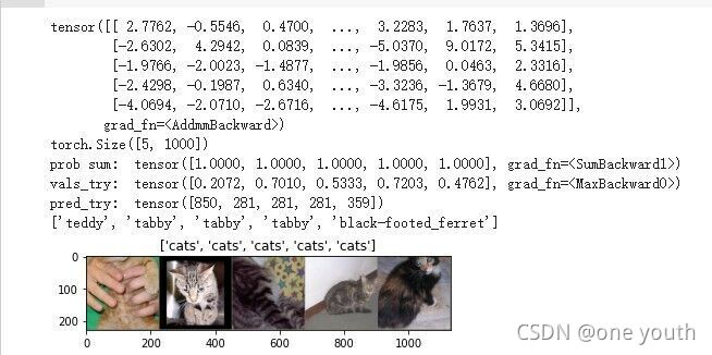 同时,把第一个 batch 保存到 inputs_try, labels_try,分别查看