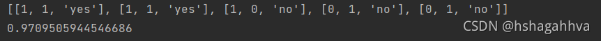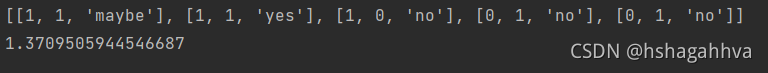 baseEntropy = calcShannonEnt(dataSet)