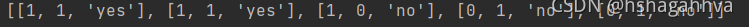 dataSet = [[1,1,'yes'],