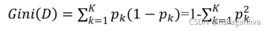 ?????????分类问题中,假设D有K个类,样本点属于第k类的概率为 , 则概率分布的基尼值定义为: