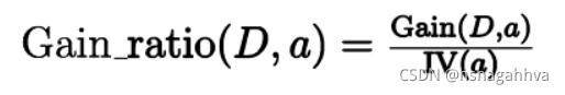 ? ? ? ? 信息增益构建决策树时,会发现对于可取数目较多的属性有所偏好,即当一个属性又能划分成多个时,信息增益的值就会偏大。因此有了一个新的概念,信息增益率。信息增益率的公式为: