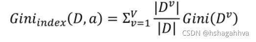 ?Gini(D)越小,数据集D的纯度越高,给定数据集D,属性a的基尼指数定义为: