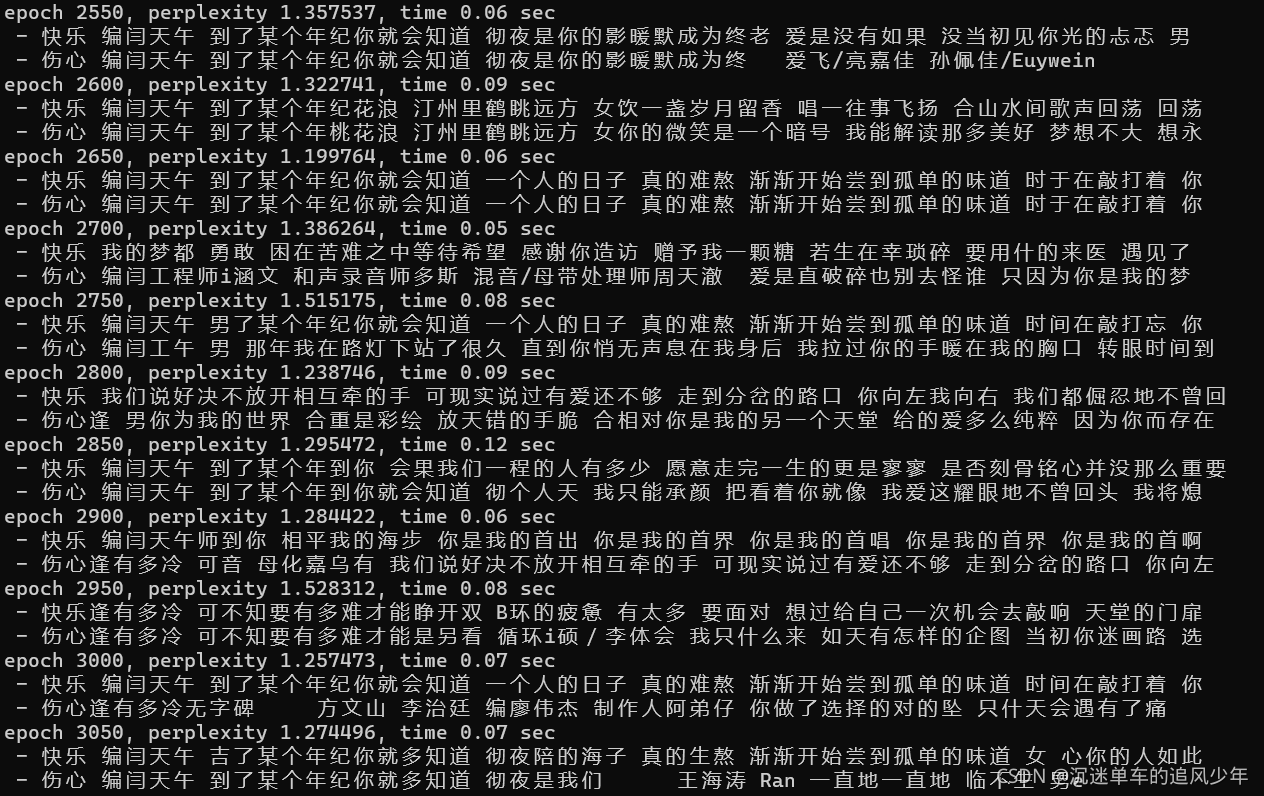 很明显,我们的模型过拟合了,因为有过多重复的生成歌词。