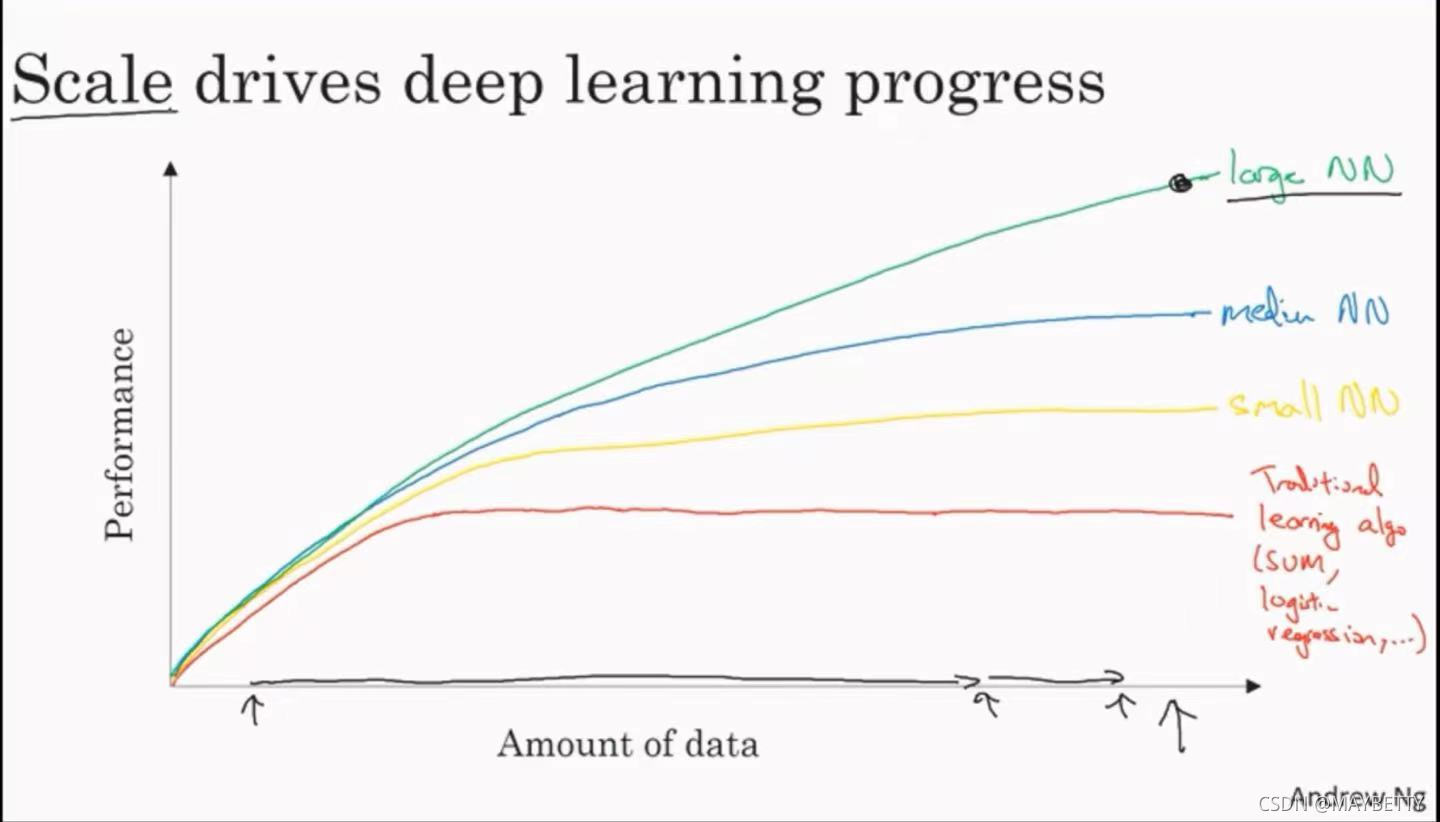 训练的神经网络的规模足够大(By scale I mean both the size of neural network,we need just a neural network with a lot of hidden units,a lot of parameters ,a lot of connections) -