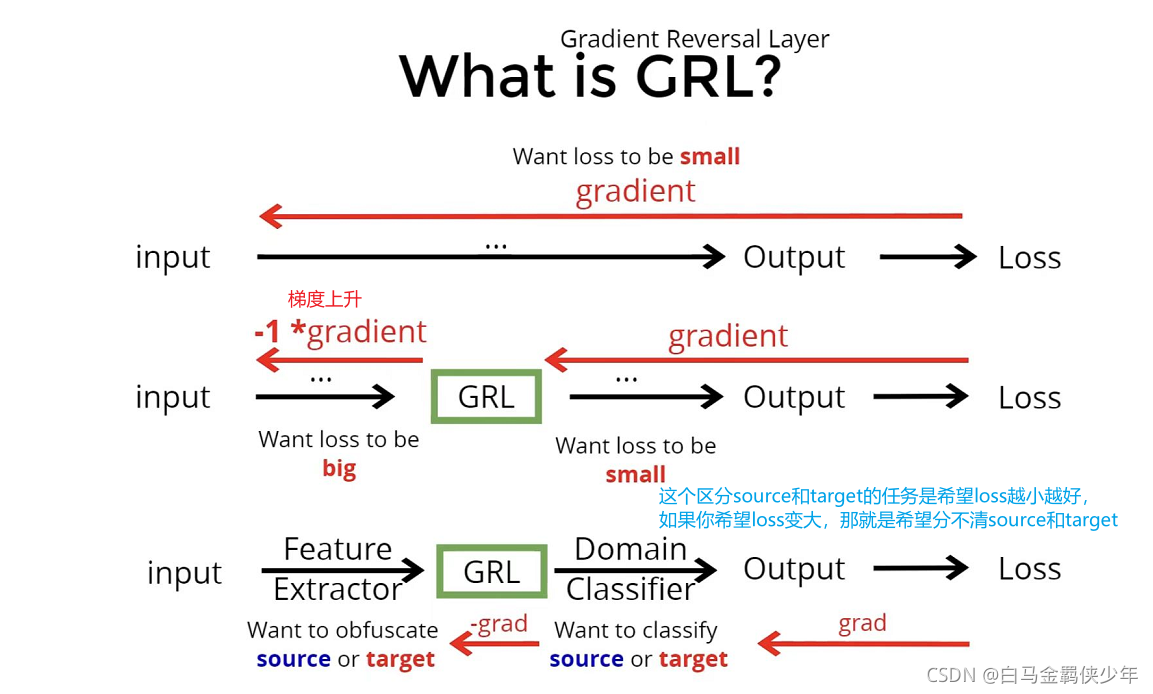 本文核心思想:训练上面的模型,让domain classifier无法分辨出你输入的x属于哪个domain。这时,我们的目的就达到了,因为我们在分不清这个x是哪个domain的情况下,模型还是能用label predictor分类器做出x的label的预测。说明我们换个domain的数据,label预测任务的性能仍然较好。