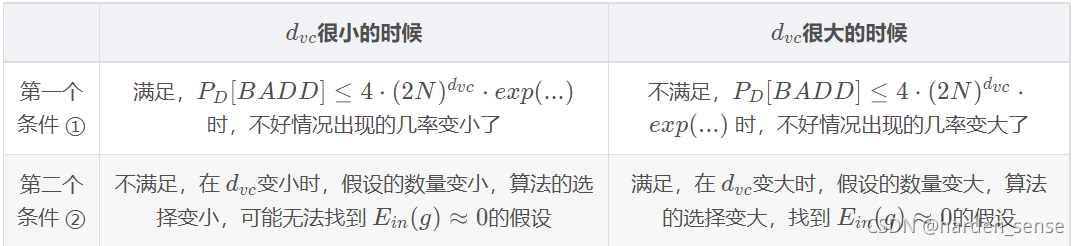 dvc?=3.从而得到如下结论:  在一些书中,参数较多的模型都称为复杂模型,很少给出解释,这一节的内容给出了很好的解释,因为在很多情况下模型参数的个数大致等于VC维的个数。参数越多或者说模型越复杂,越有可能找出使