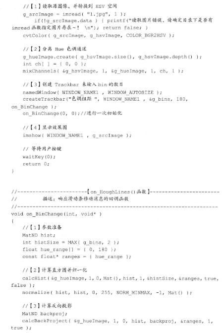 createTrackbar("色调组距",WINDOW_NAME1,&g_bins,180,on_BinChange);