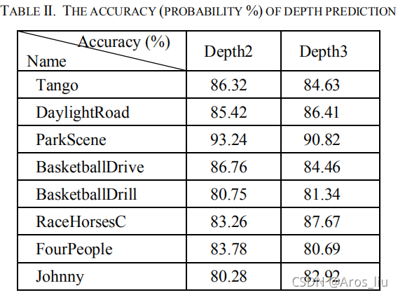 用LCU中洗个64x64的CU的平均QT深度来表示一个LCU的平均深度,如图3所示。训练用的序列如表1所示,其中Class D分辨率太小,Class F中包含很多中不同分辨率的序列,所以都不采用。
