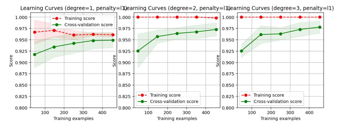 plot_learning_curve(plt, polynomial_model(degree=degrees[i], penalty=penalty, solver='liblinear', max_iter=300),