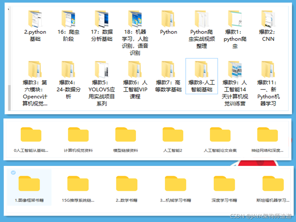 小编整理了有关Python人工智能的资料,有图像处理opencv\自然语言处理、机器学习、数学基础等资源库,想学习人工智能或者转行到高薪资行业的,大学生也非常实用,无任何套路免费提供, ???扫码+vx(更方便)领取