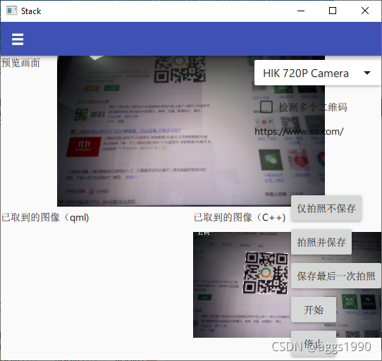 本教程是在?Qt5.15.2+Qt6.2.1(qml)拍照捕获视频帧(示例合并) 示例的基础上修改
