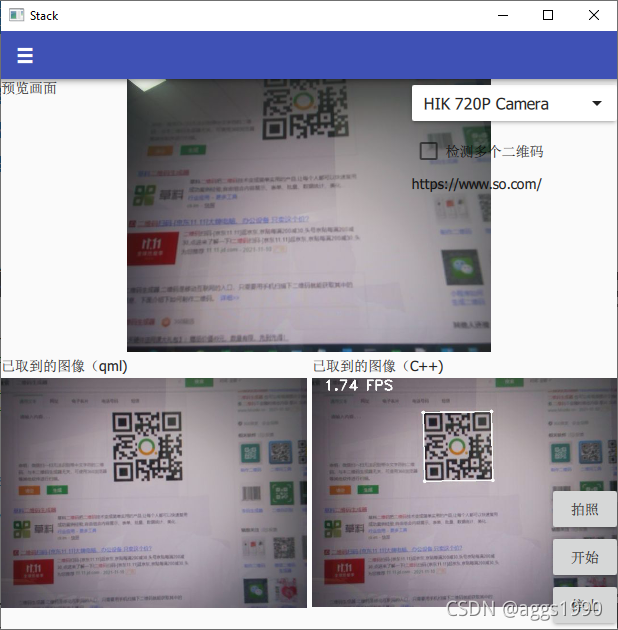 可以直接从 QR扫码综合示例教程(九)Qt5.15.2+Qt6.2.1(widget)+opencv4.5.4实现扫码功能(多线程)的示例中复制过来修改