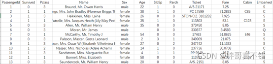 Survived为标签数据,除 Survived之外的为特征数据。关键代码如下: