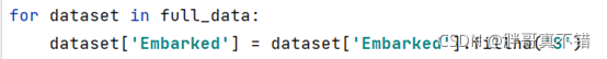 Embarked特征用’S’来填充空值, Fare特征用中位数来填充空值,关键代码如下: