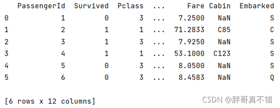 使用Pandas工具的head()方法查看前6行数据:
