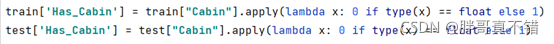 ?使用Pandas工具的type()方法来查类型是否为float类型,来判断乘客是否有客舱号,关键代码: