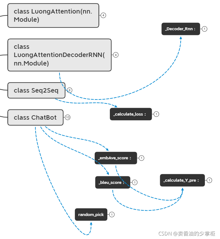 ????????Model.py:seq2seq的模型,也就是encode,decode的部分。Attention架构,计算loss,
