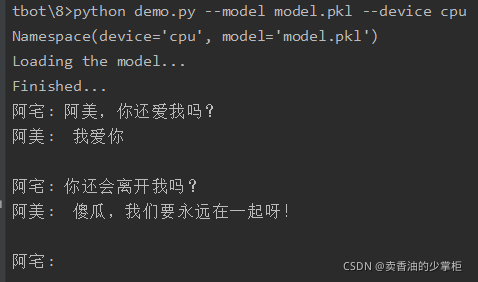 ? ? ? ? 通过几个昼夜的爆肝码代码,最后阿宅把那和阿美好几个G的美好回忆==>聊天记录文档,传入了系统中,聊天机器人学习。