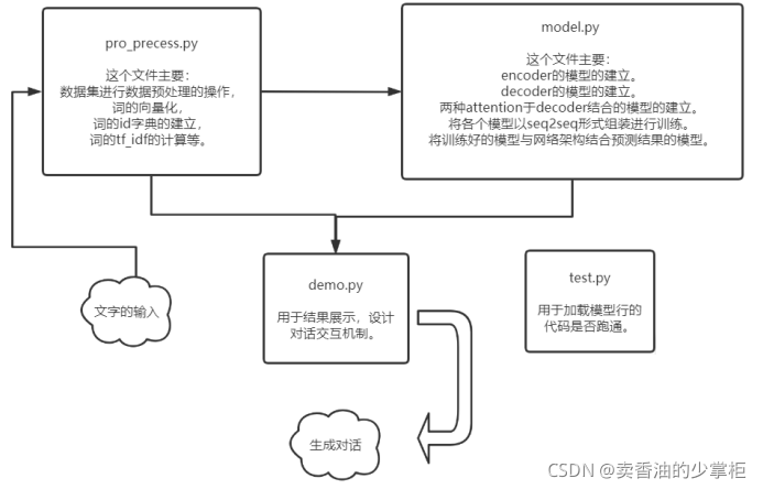 ????????Preproce.py:数据预处理,正则匹配,分词,tf-idf词频。
