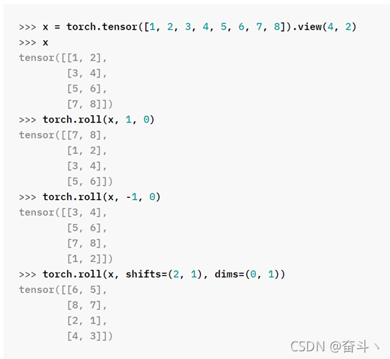 其实原理很简单,就是使用了torch.roll()这个方法,关于方法的解释及代码如下,大家可以了解一下。