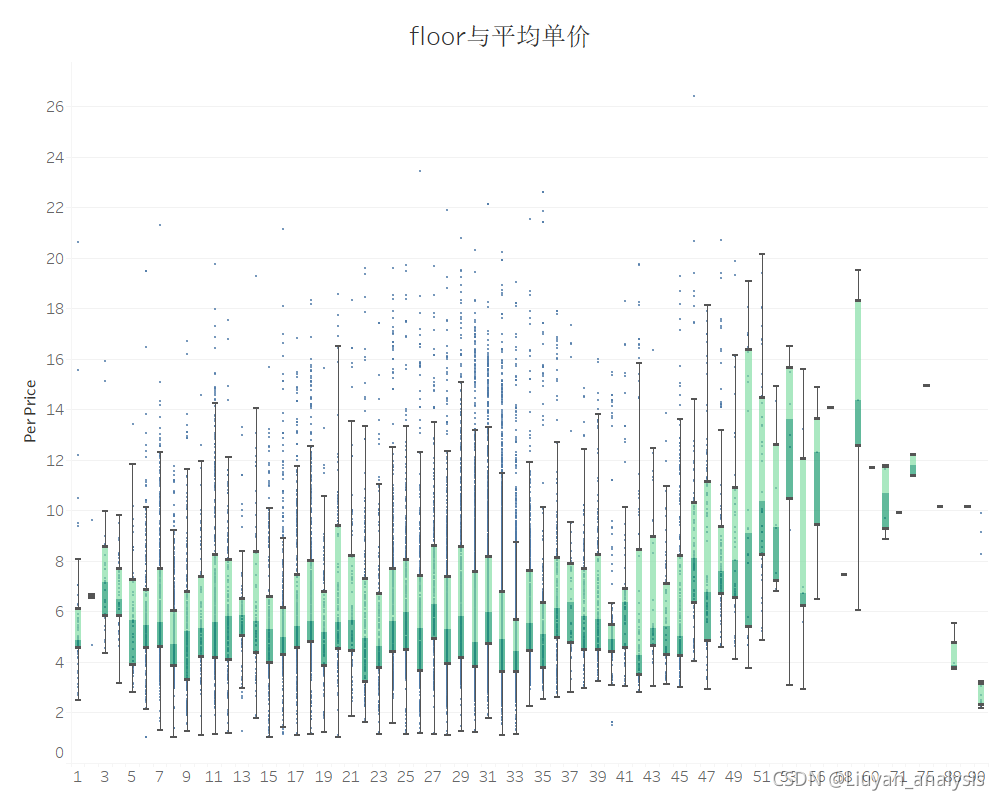 1.随着楼层的变化,平均单价波动较大,所以楼层对单价有影响。