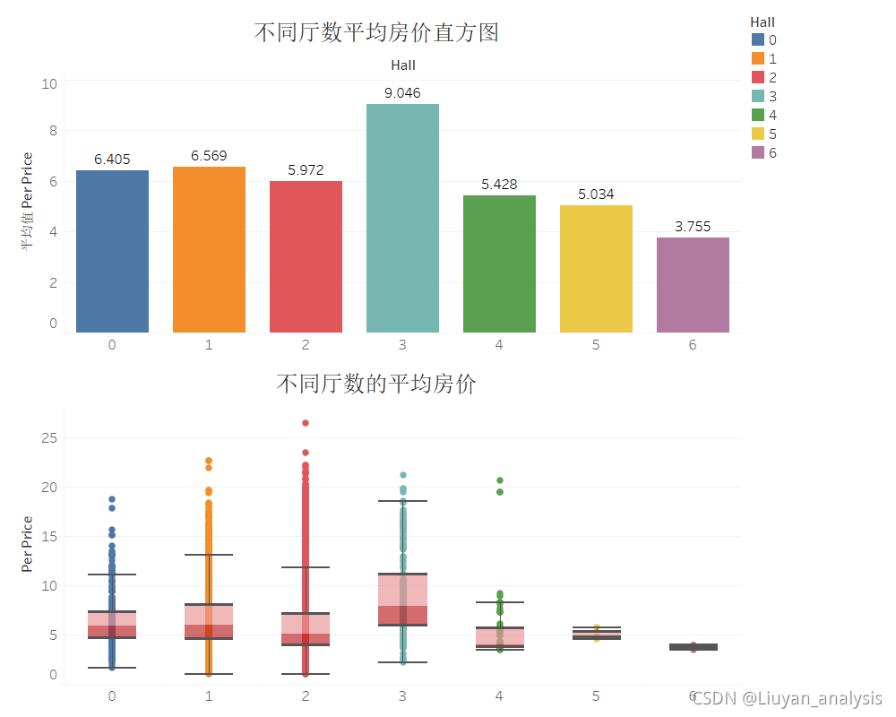 - 厅数量为3的平均单价最高。
