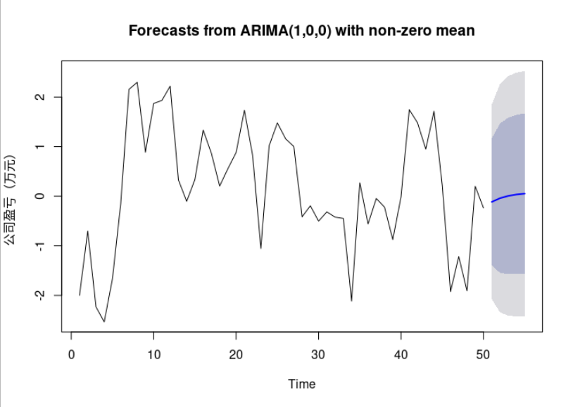 plot(fore4_1, xlab = "Time", ylab = "公司盈亏(万元)")
