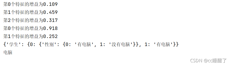 bestFeat = chooseBestFeatureToSplit(dataSet) # 选择最优特征