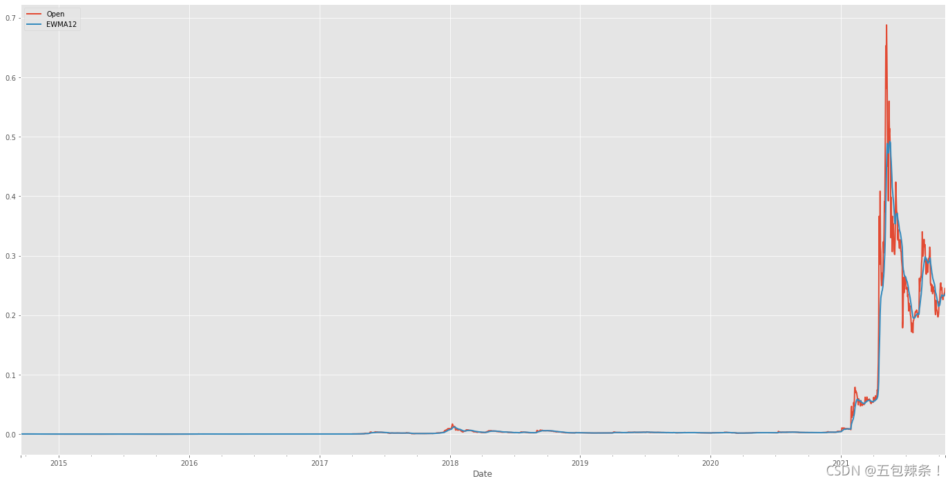 df[['Open','EWMA12']].plot(figsize=(24,12))