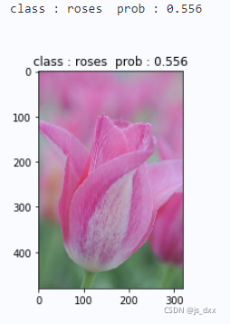 最后自己选的是个郁金香,说实话自己也看不出来这个像不像玫瑰,但是epochs调大后,VggNet对这幅图更加坚定的认是玫瑰,可能因为它红吧!