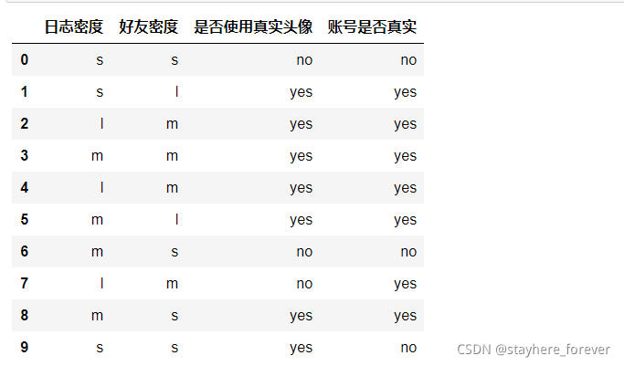 '账号是否真实': ['no','yes','yes','yes','yes','yes','no','yes','yes','no']})